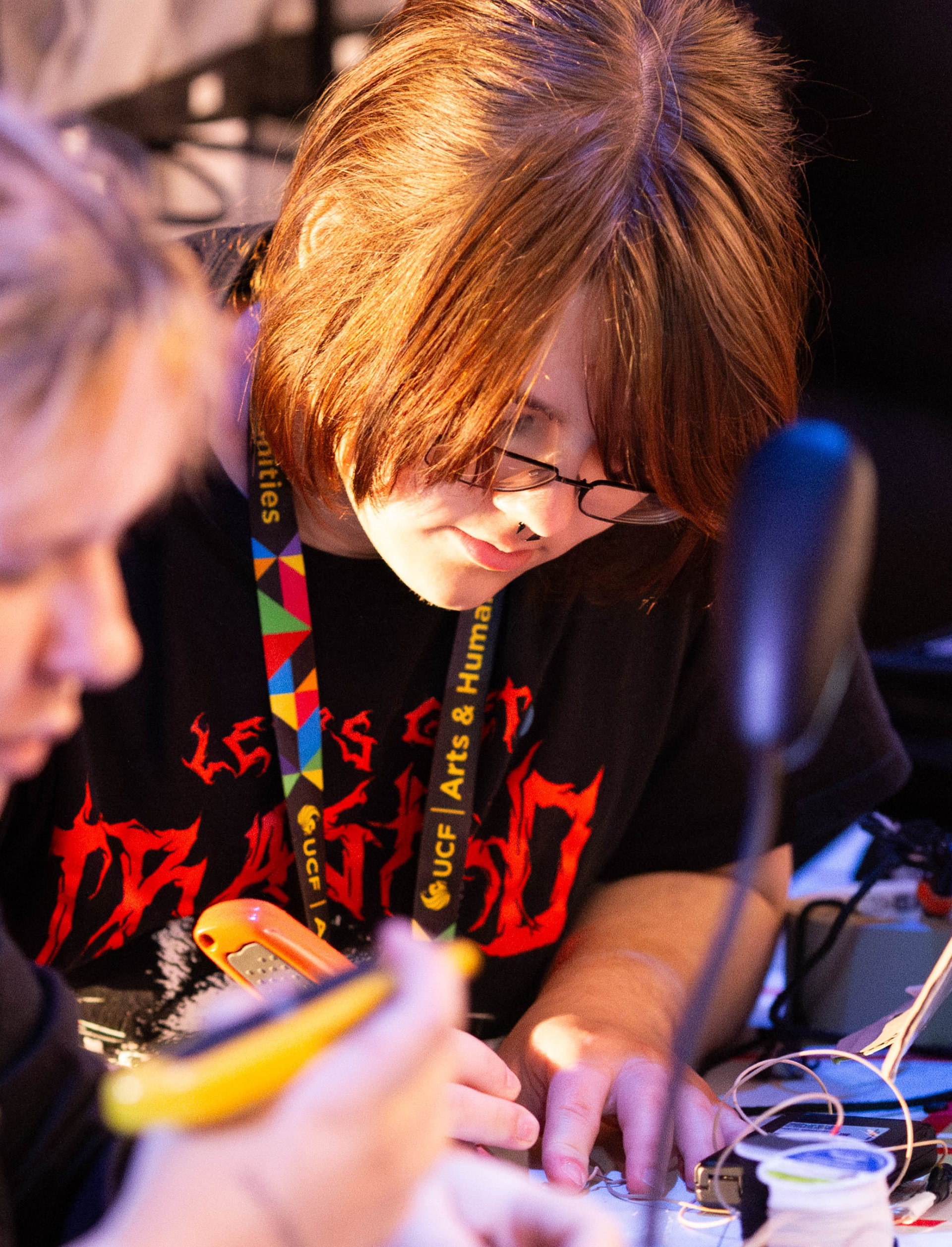 Demetri crafting one of over forty custom ear rigs for Theatre UCF's 2024 Celebrates the Arts production, Sweeney Todd.